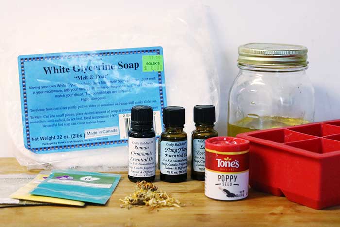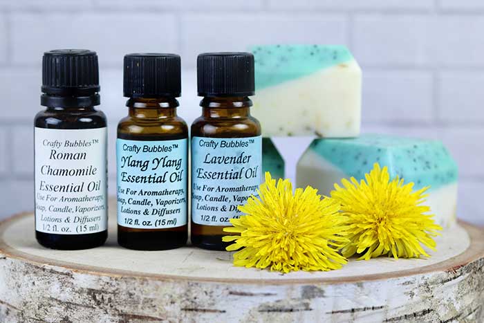 Since this dandelion melt and pour soap is for dry skin, I wanted to use an essential oil blend that would be good for dry skin. I chose a blend of lavender essential oil, Roman chamomile essential oil, and ylang ylang essential oil. All three oils are excellent for the skin.