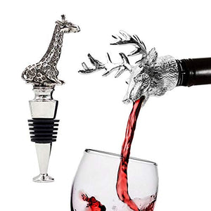 Wine Aerator Pourer and Stoppers Stainless Steel Set of 2,Reindeer Wine Aerating Decanter fit for all Red and White Wine Bottles,Wine Stoppe...