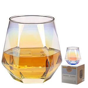 Diamond Stemless Wine Glass 11 Oz, Iridescent Wine Glass for Serving White Wine ,Red Wine, Whiskey,Bourbon,Rainbow Whiskey Glass Gi...