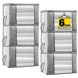 JERIA 6-Pack Grey Foldable Closet Organizer Clothing Storage Bags with Clear Window, Reinforced Handle and Sturdy Zipper (Size: 19″ L X ...