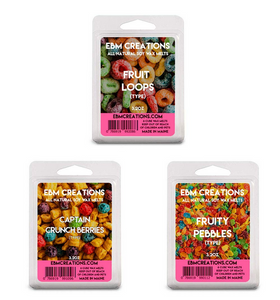 These all-natural soy 3 Pack Fruity Cereal Wax Melts are made and shipped from Maine, USA.